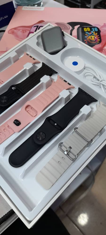 نگهداری شارژ عالی نسبت به قیمت امکان کنترل تماس ها و برقراری تماس از طریق بلوتوث دارای سنسورهای سلامتی گام شمار، ضربان قلب ، فشار خون دریافت اعللانها و پیام ها از شبکه های اجتماعی امکان اتصال به گوشی های هوشمند اندروید و آیفون اقلام داخل پک: ساعت هوشمند + 5 عدد بند + شارژر و ایرپاد